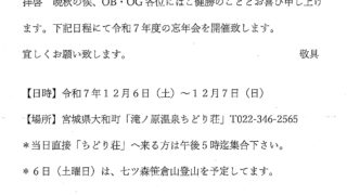 ◎ 忘年会のお知らせ 2025年12月6日(土)~12月7日(日)