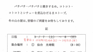 お知らせ ◎倉石ヒュッテ冬の集い開催日変更のお知らせ →2026年3月14日(土)~15日(日)に変更です!