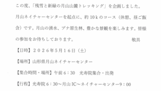 お知らせ ◎2026年5月16日(土)日帰り 残雪と新緑の月山山麓トレッキング 参加募集のお知らせ