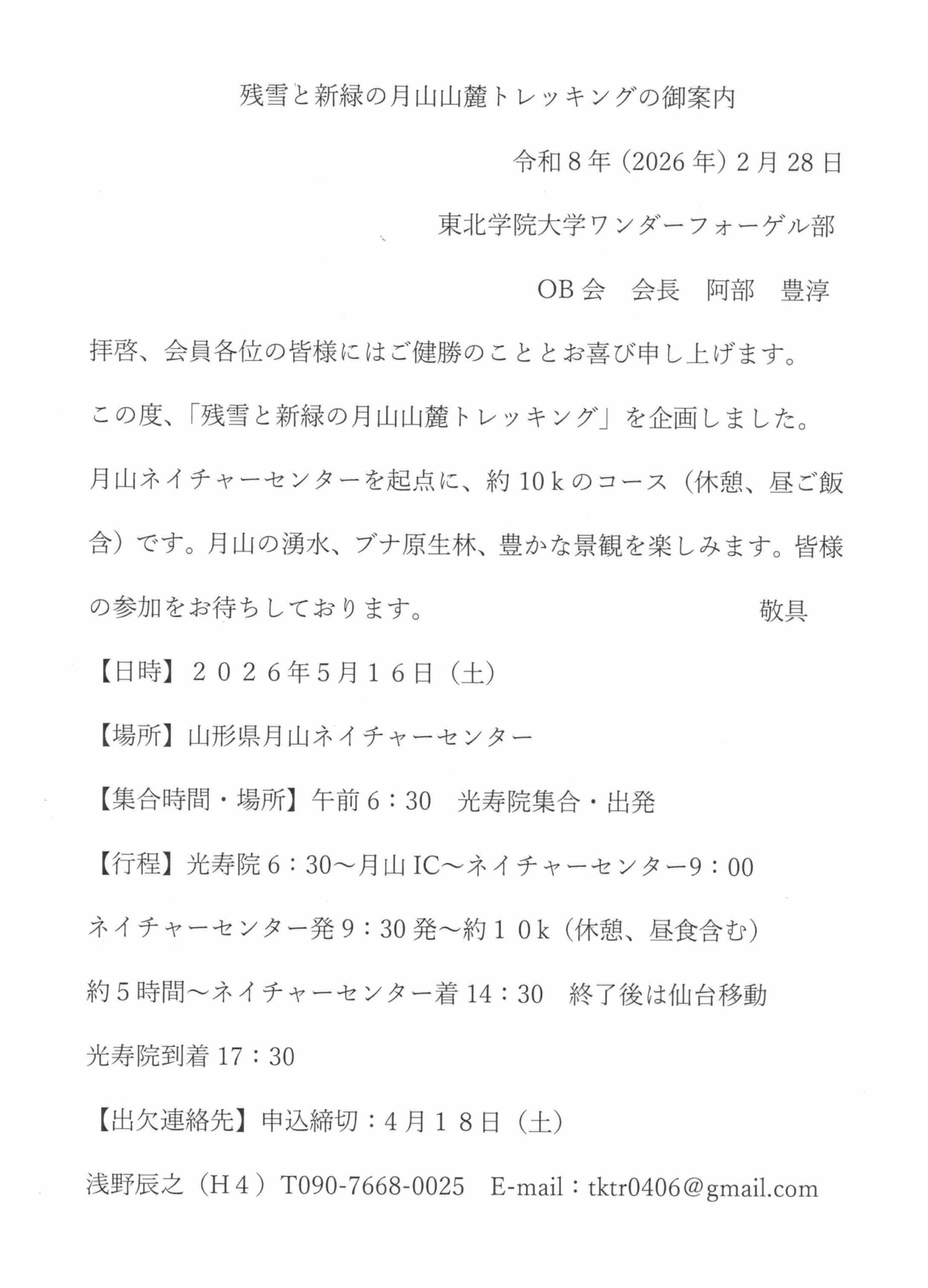◎2026年5月16日(土)日帰り 残雪と新緑の月山山麓トレッキング 参加募集のお知らせ